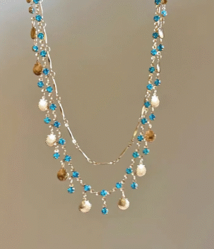 Ocean Blue Crystal Seashell Necklace & Bracelet – Trendy Beach Style Layered Party Wear Jewellery