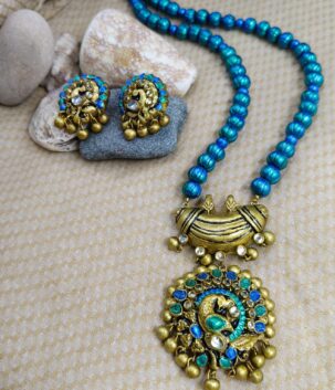 Blue Peacock Terracotta Set