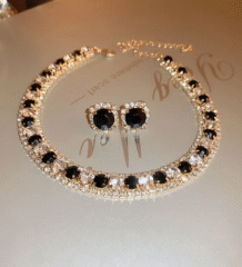 Make an unforgettable impression with this luxurious black crystal floral necklace. Designed with premium cut stones arranged in an elegant petal pattern, this piece blends glamour with sophistication. The reflective crystals catch light beautifully, making it a perfect choice for evening occasions. Lightweight and comfortable, it pairs effortlessly with gowns, cocktail dresses, indo-western outfits, and festive wear.