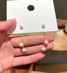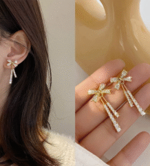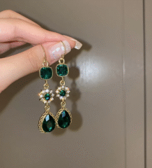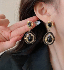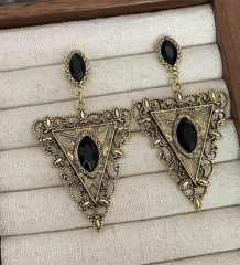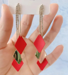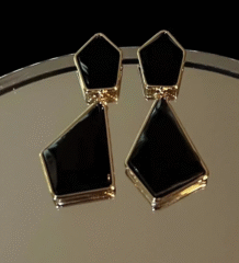 These statement long drop earrings feature a stunning combination of matte black and glossy gold diamond-shaped charms hanging from delicate rhinestone chains. The sleek geometric design adds instant edge and elegance, making them perfect for evening outings, parties, and modern festive looks.