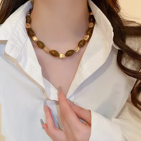 Elevate your everyday elegance with this beautifully crafted brown stone and gold-plated necklace. Featuring glossy oval beads with a natural marbled effect paired with smooth gold-toned elements, this necklace creates the perfect balance of earthy charm and modern luxury. Its bold yet sophisticated look makes it ideal for pairing with ethnic wear, western outfits, and special occasion ensembles.