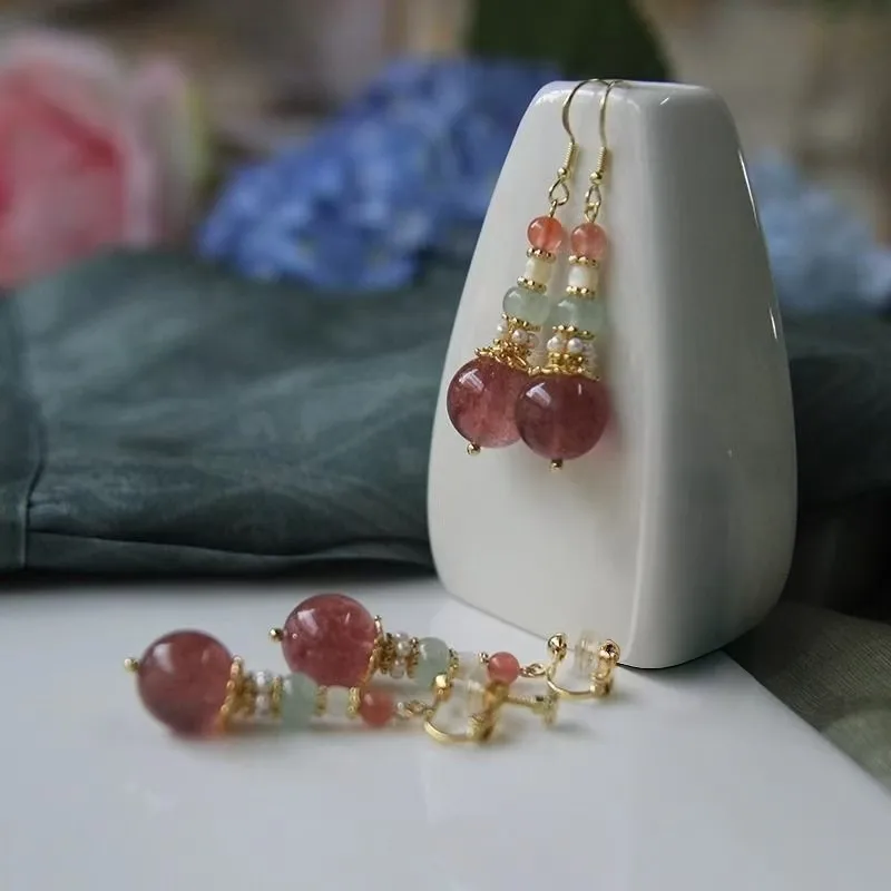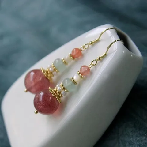 These pastel beaded drop earrings feature a beautiful combination of pink, peach, and mint beads with delicate gold accents. The semi-transparent beads add a soft, dreamy glow, while the design remains lightweight and comfortable for all-day wear. Perfect for women who love subtle elegance with a handcrafted, artisanal feel.