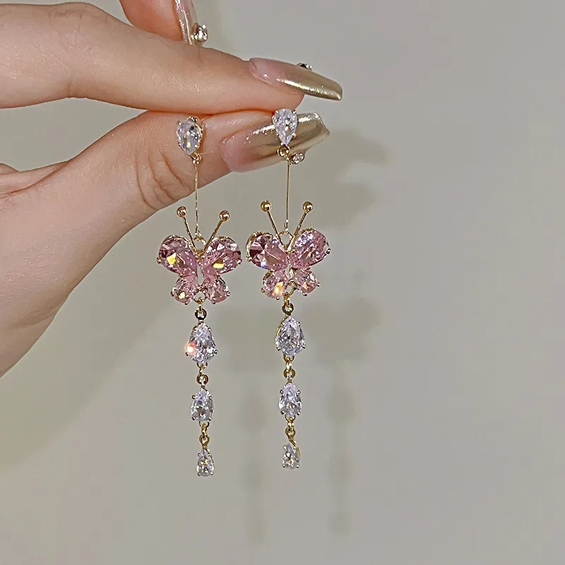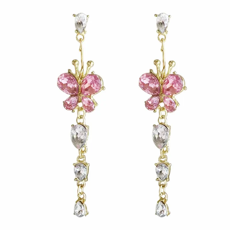These enchanting pink butterfly crystal earrings add the perfect touch of elegance and femininity to any look. Designed with sparkling butterfly-shaped stones and delicate dangling crystals, they create graceful movement and a luxurious shimmer. Lightweight and comfortable, they beautifully complement western outfits, gowns, pastel ensembles, and even Indo-western styles.